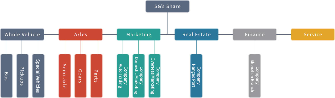 Liaoning SG Automotive Group Co., Ltd ( “SG Automotive Group” or “SG SHARES” for short), headquartered in Dandong, Liaoning Province, is a large automobiles group with complete vehicle, axle and components as its main business. SG Automotive Group owns two brands---HUANGHAI AUTO and SG AXLE, one national accredited Tech Center and one National Level Automobiles Parts Test Center. Honored as National Complete Vehicle Export Base, SG Automotive Group is able and qualified to design and manufacture all kinds of complete vehicles, and masters the R & D and manufacturing capability of core components including traditional axle, electric drive axle, hub motor and chassis system, etc. Till now, it has formed three complete vehicle production facilities and eight axle and component production facilities in eight cities and six provinces across the country.