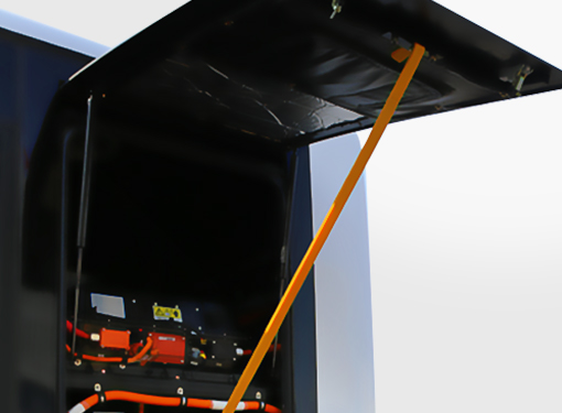 All power batteries are packed in five unified standard battery boxes, and connectors and inspection pots to batteries are arranged on two side walls, making maintenance and replacement of the batteries much more convenient. The centralized arrangement of batteries saves much space for chassis parts and makes the repair and maintenance of the chassis parts easier.