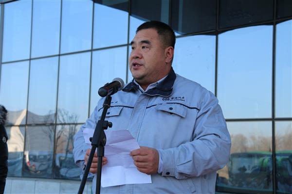 集团新能源基地厂庆升旗仪式中,轻型车事业部员工杨靖作为获奖员工代表发言。